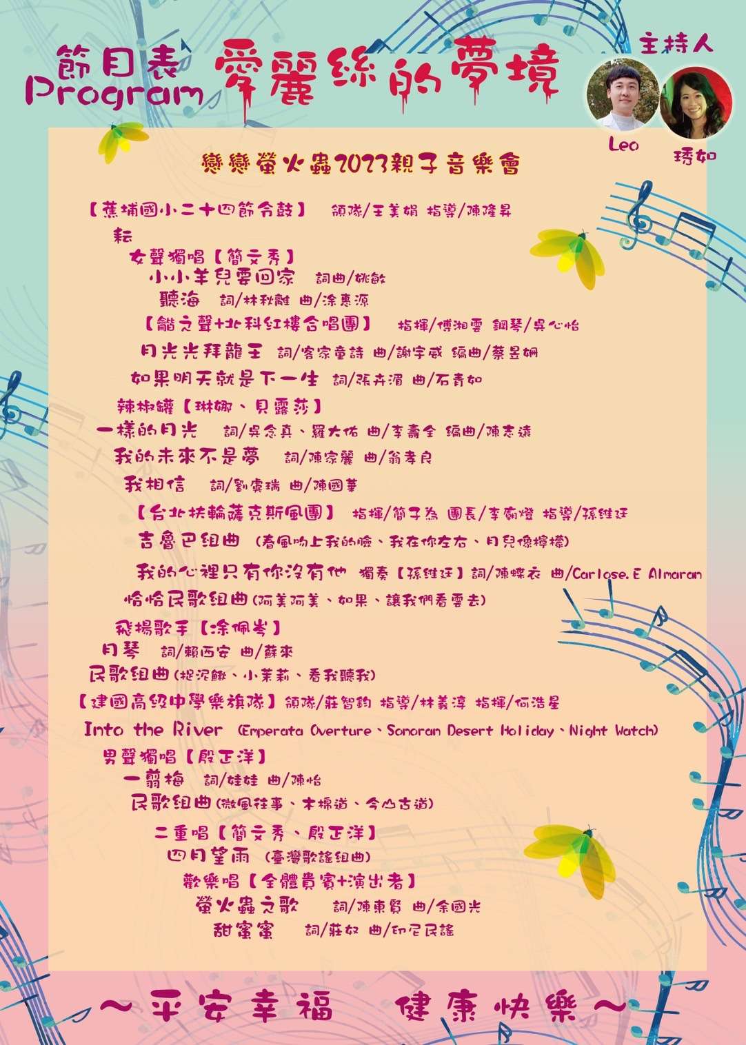 112年4月29日「愛麗 絲的夢境戀戀螢火蟲2023親子音樂會」活動資訊