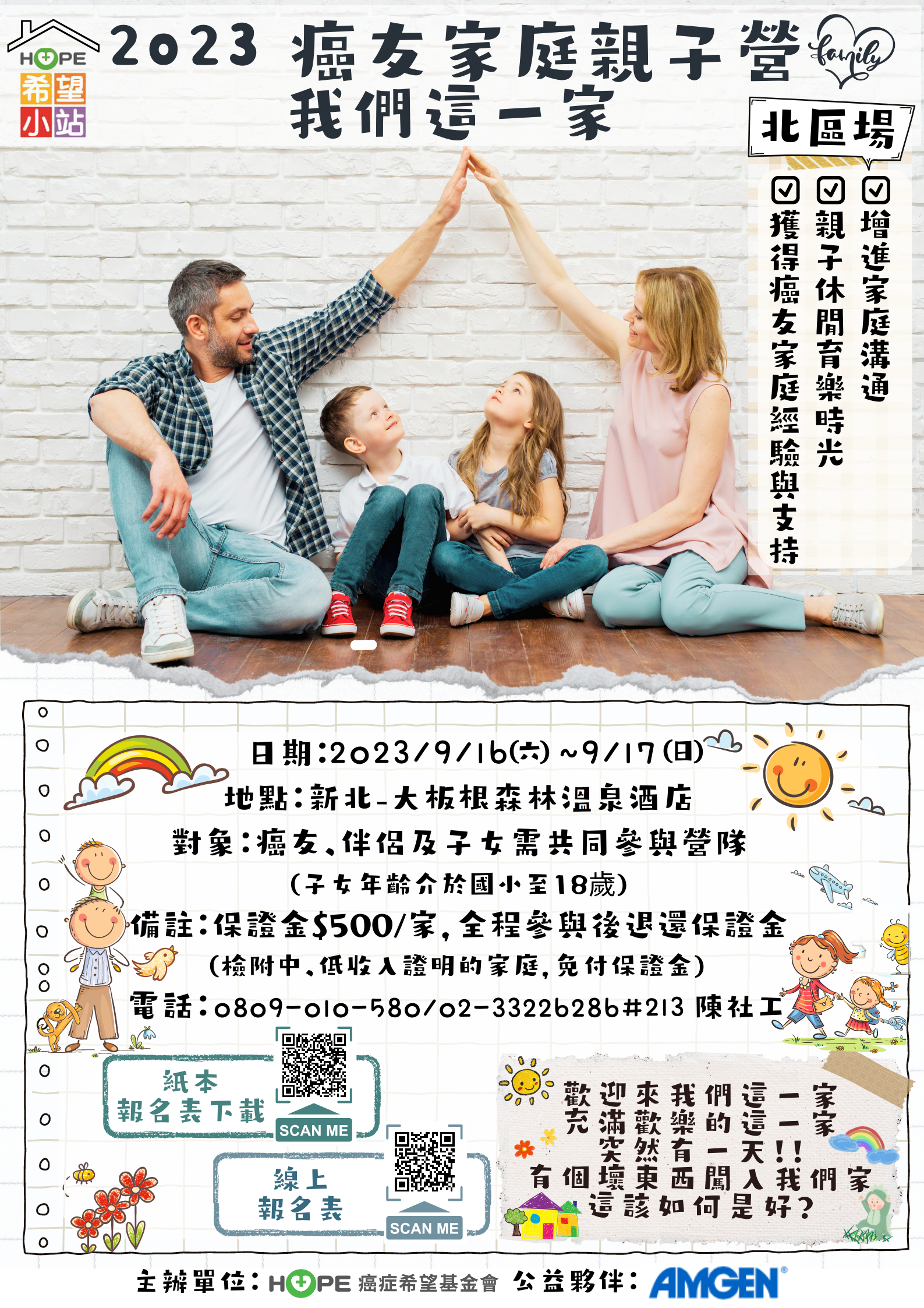 說明: 一、藉由親子營,協助罹癌父母理解孩子如何看待癌症,提供 親子溝通癌症訊息的平台與管道,增進親子對話的機會。 透過團體引導及討論的方式,促進親子溝通及互動,讓彼 此的「愛」得以在家庭中流動。