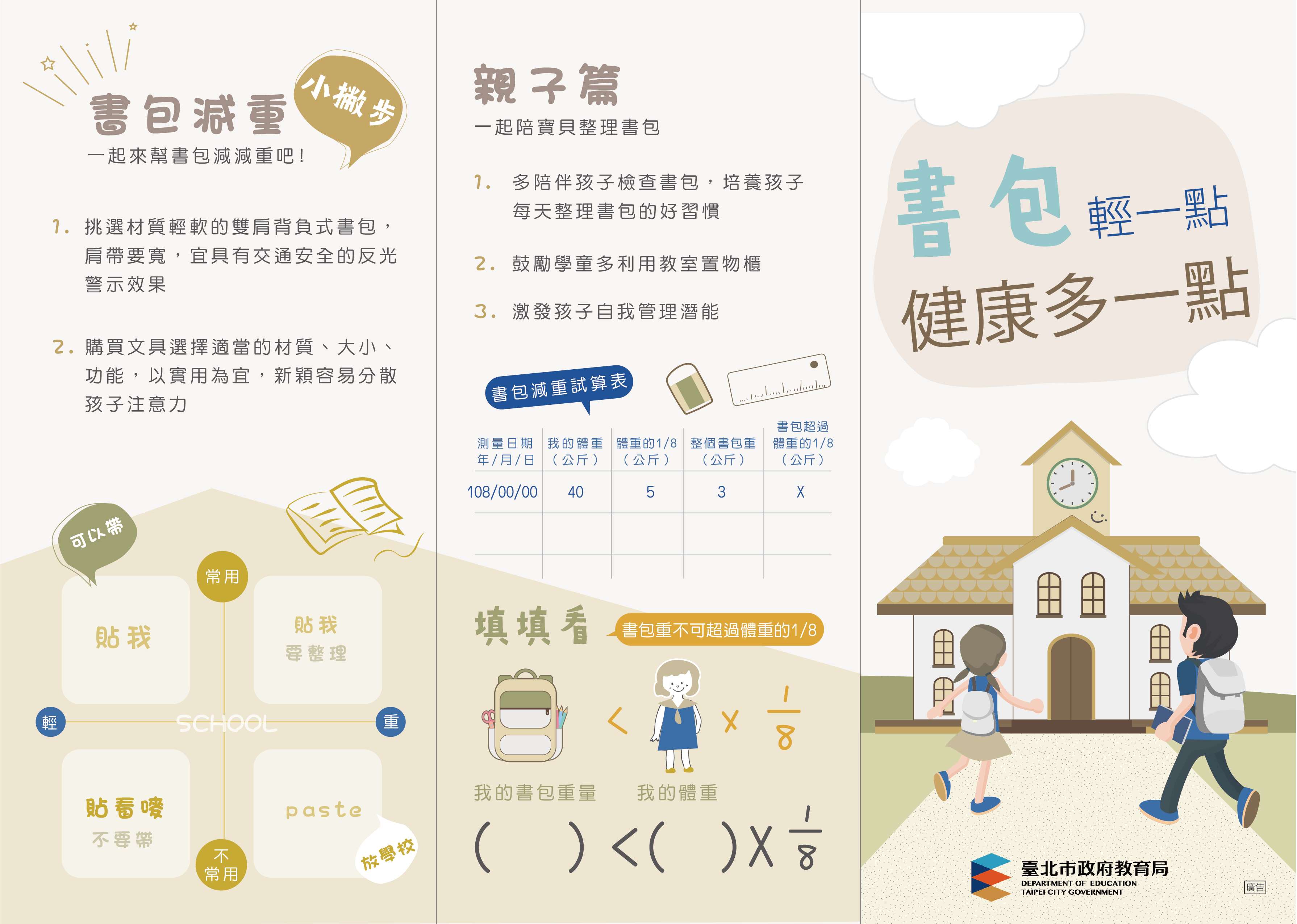 重理念,並請參考附件教育局特編製「書包減重宣導摺頁」。
