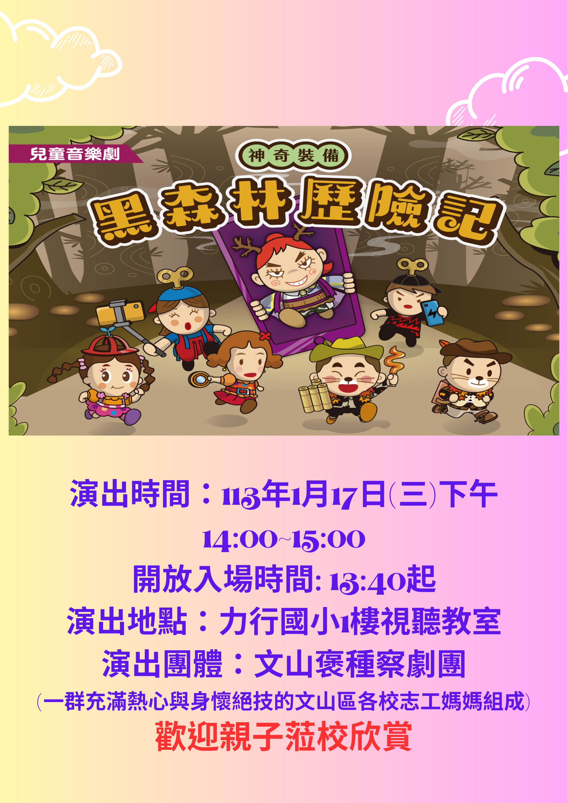 1/17(三)下午<神奇裝備-黑森林歷險記>兒童音樂劇活動