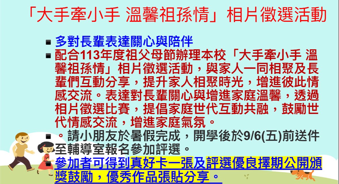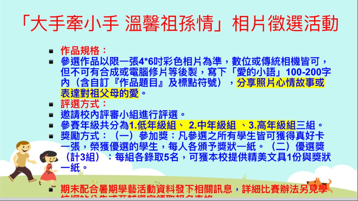 #113學年度大手牽小手溫馨祖孫情相片徵件