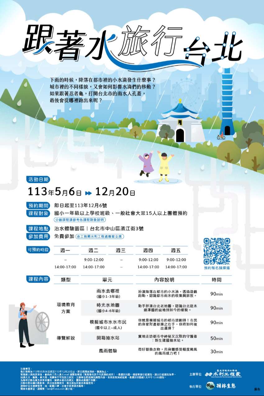 說明: 一、旨揭課程包含防減災與氣候變遷調適議題,可搭配國中小 及高中之社會與自然領域教學,即日起至113年12月6日開 放國小一年級以上學校班級及一般社會團體免費預約,預 約網址為https://reurl.cc/vvk8LA。