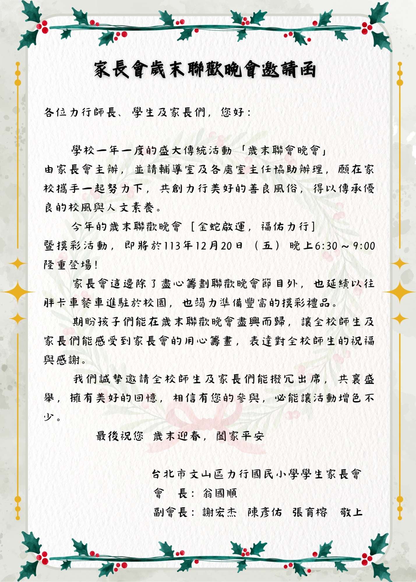 歲末年終,歡迎力行親、師、生共同參與盛會,歡喜迎接新