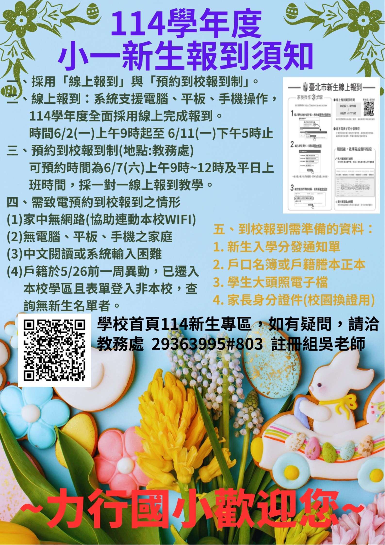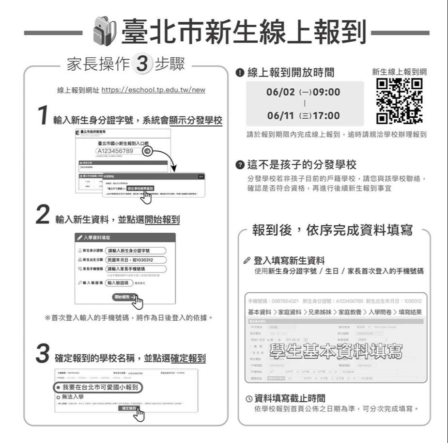 新生報到期間為6月2日(一)0900~6月11日(三)1700,114年6月7日(六)當日上午9:00至12:00,