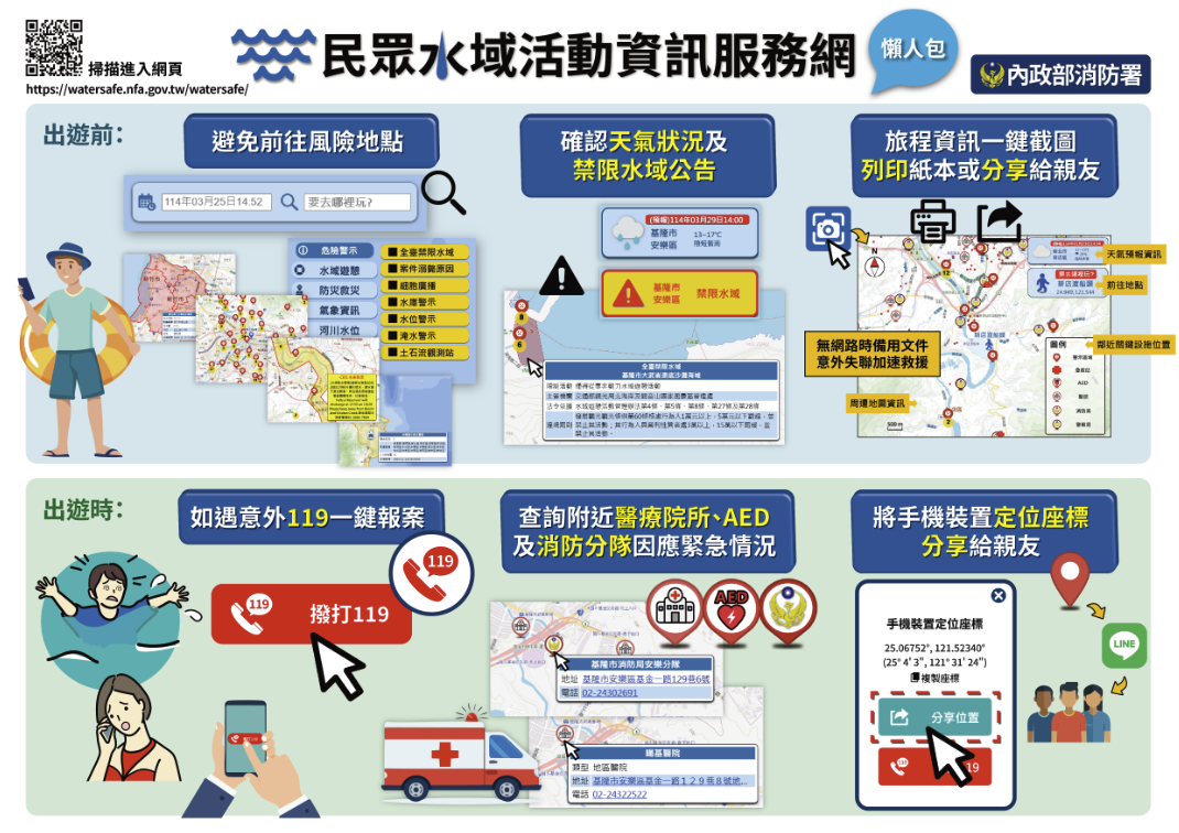 一、近日偶有大雨情形,考量學生(家庭)於假期間,參與露營或健行等各式活動規劃戲水、涉溪情形,或者從事水域遊憩(含游泳、衝浪、潛水、獨木舟等)等活動可能性高,請務必落實水域及遊憩安全宣導,且應穿著救生衣並選擇合法水域場所、前往有合格救生員駐守之安全水域地點戲水,避免溺水事件一再發生。