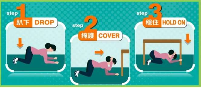 1、全民地震網路避難動作演練:114年9月19日上午9時 21 分,由交通部中央氣象署發布「國家防災日地震 警 報」訊息,即進行自主性就地避難演練(趴下 Drop、 掩護Cover、穩住Hold on)。