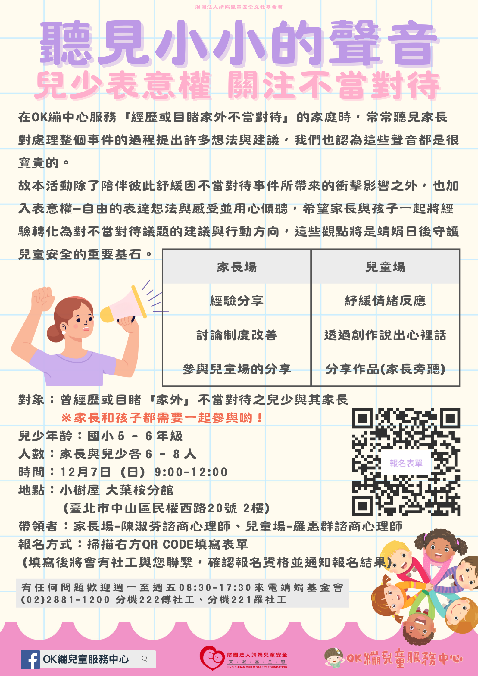 財團法人靖娟兒童安全文教基金會OK繃兒童服務中心 辦理114年度「聽見小小的聲音」不當對待議題討論