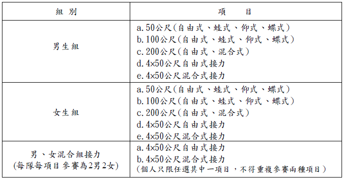 1、游泳:114年12月3日(星期三),地點為臺北市立龍門國中游泳池。