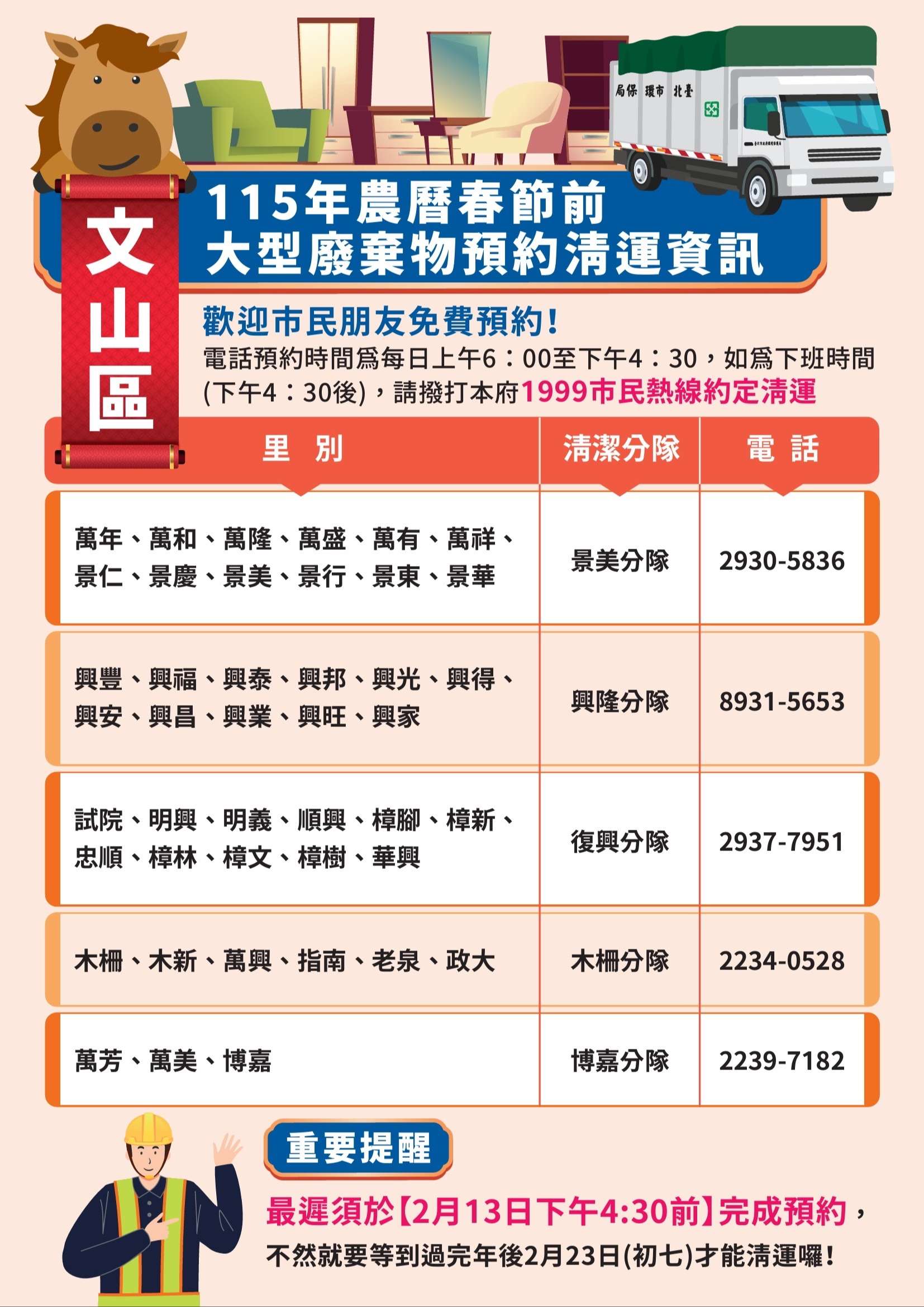 (二)115年春節期間垃圾清運方式(115年2月9日至115 年2月22日止):