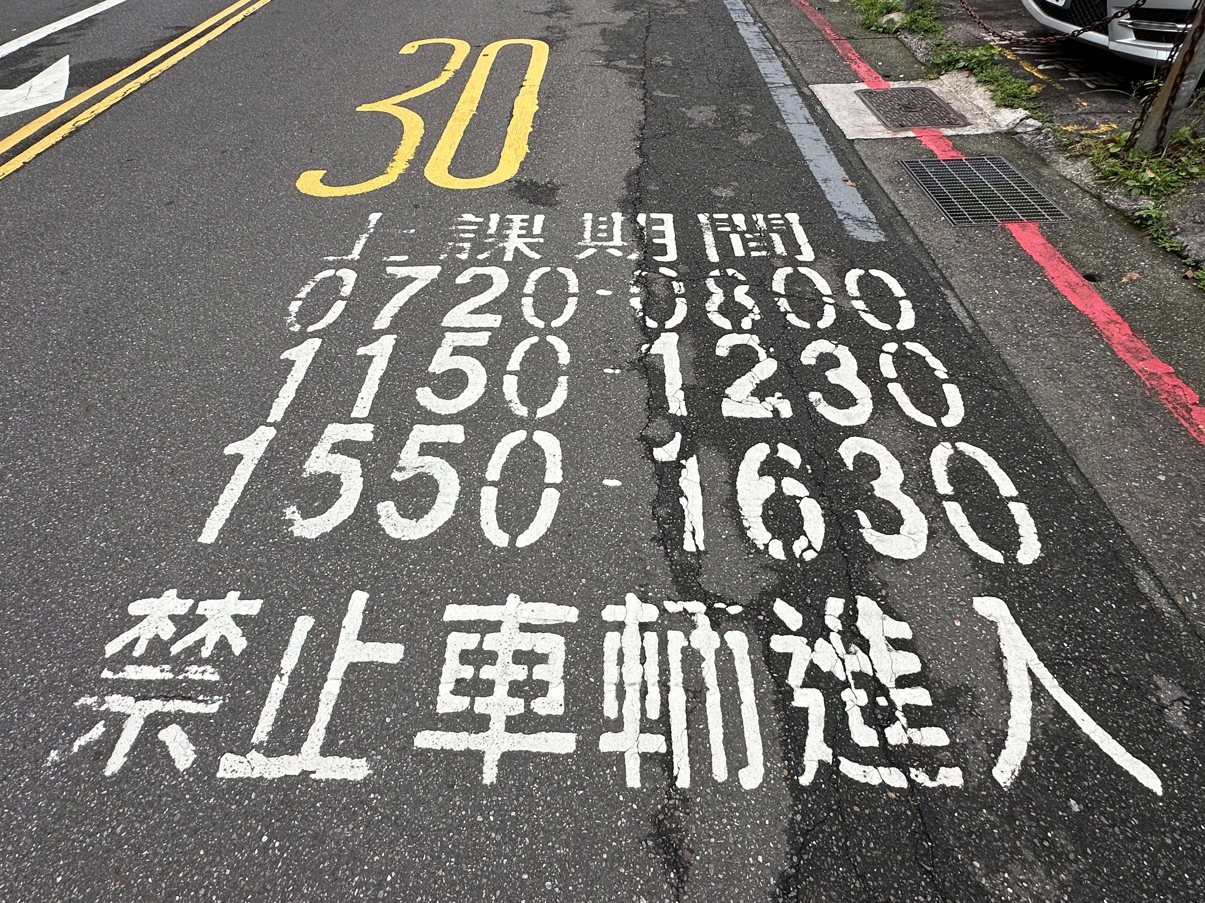 為維護學生行走安全,在管制時段內各型車輛請勿駛入徒步管制區(通學巷);如於管制時段前已停放之車輛,請待管制解除再離開。