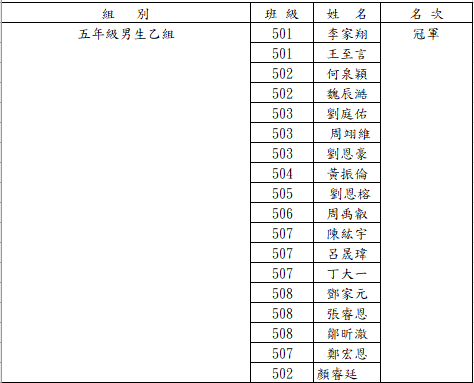 明星球員:502顏睿廷、507鄭宏恩、508張睿恩