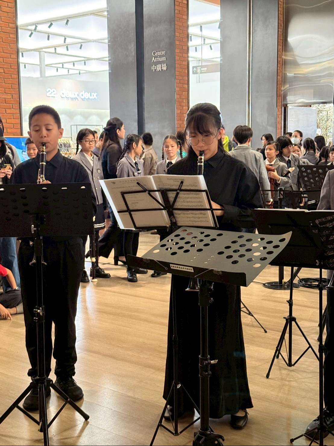 連假的第一天,本校直笛團受邀於新店裕隆城演出,感謝🙏直笛團隊王姿婷、潘佳玲老師隨隊指導,賴佩妮、陳美君老師指導支援與聯繫,家長、師長熱情到場支援和鼓勵,開心看到力行直笛團隊孩子們優質演出,也看到👀師長、家長們的全力支持,展現才藝、行銷特色,讓假期充滿音樂氣息,也分享歡樂喜悅!